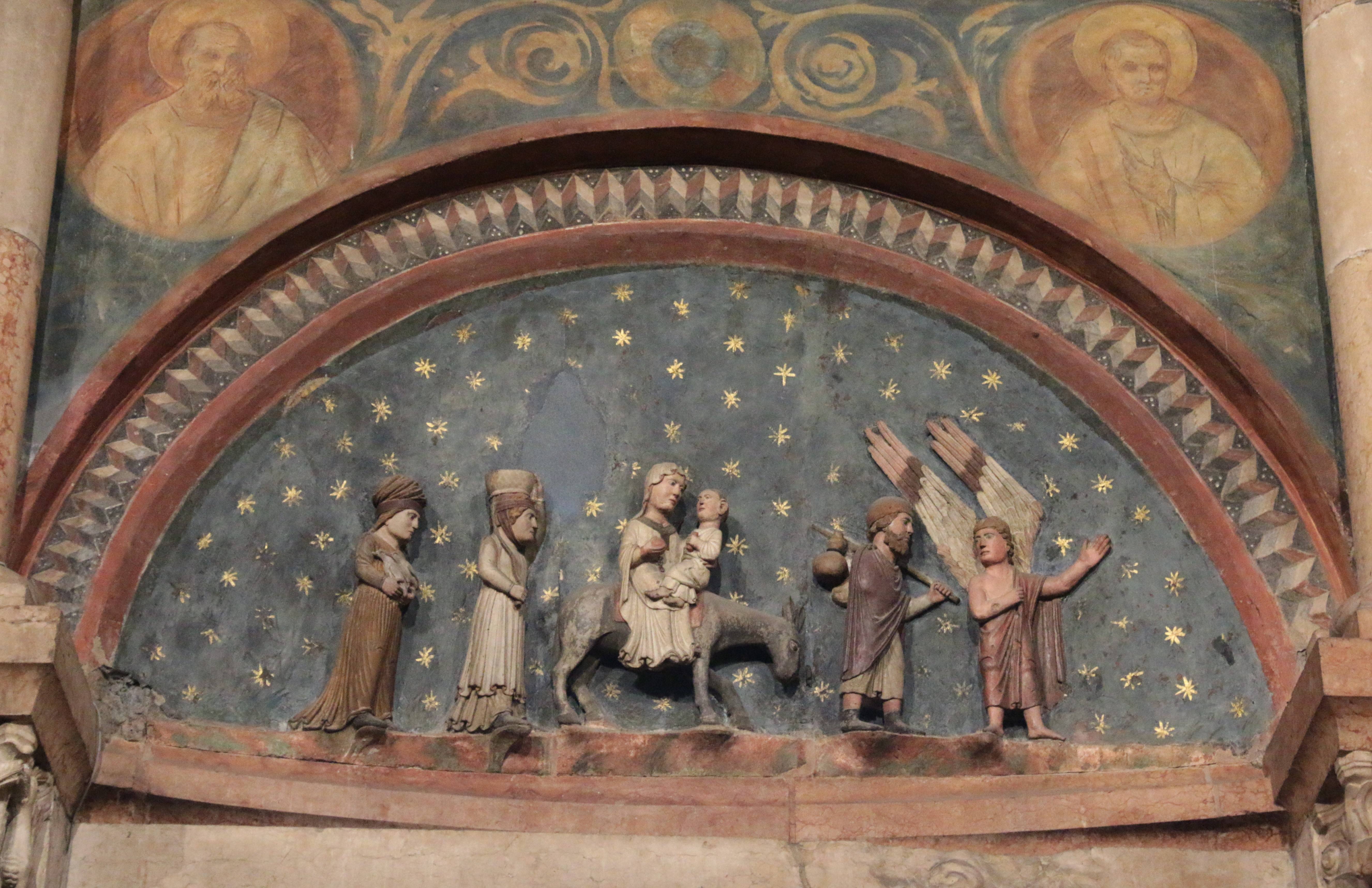 советует скрыться в Египте. На оружающем люнет фризе - рельефные фигуры 12 апостолов, а на архитраве (горизонтальной панели под