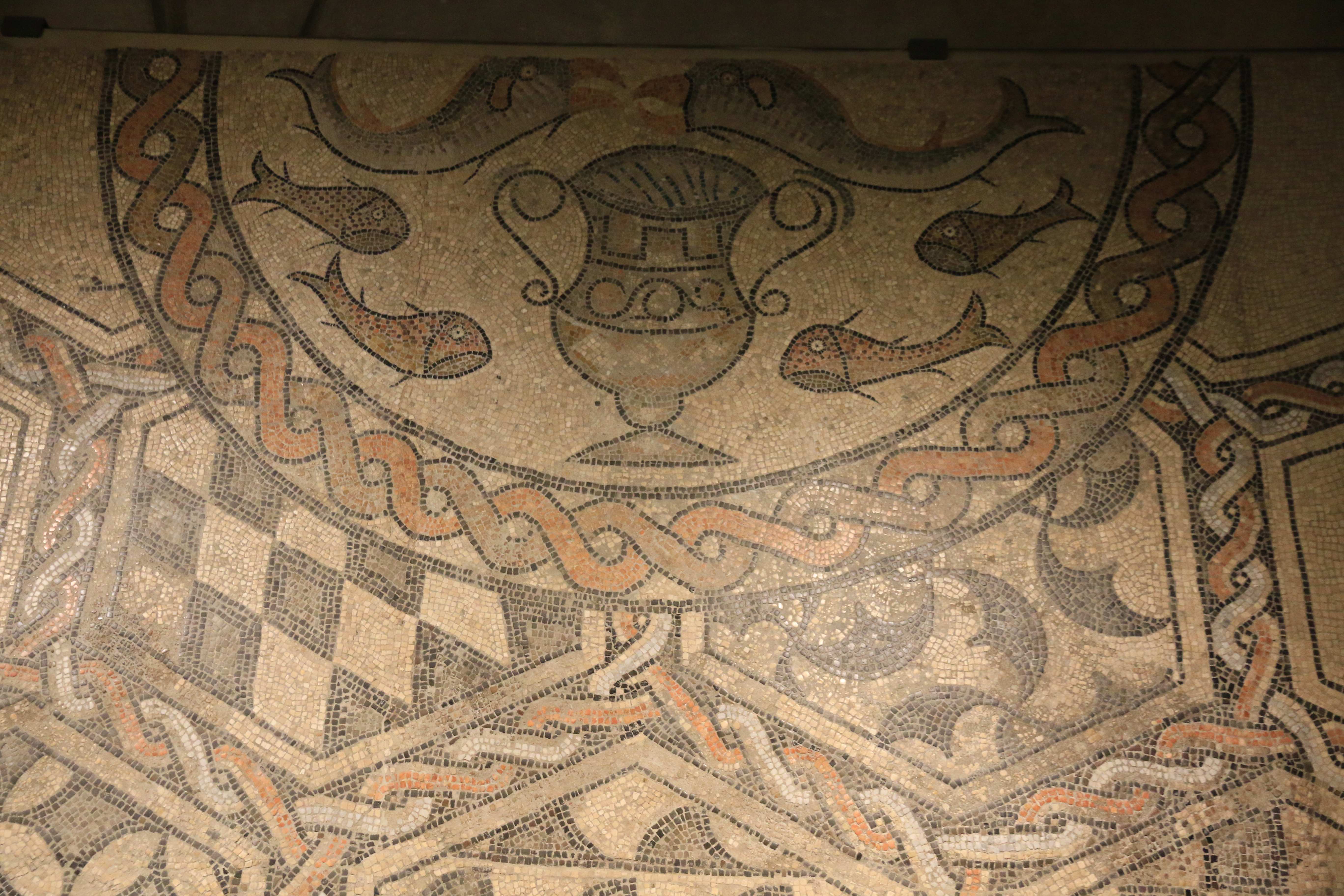 Фото 3. Раннехристианская мозаика с рыбами, найденная в Дуомо. 4-5 век.