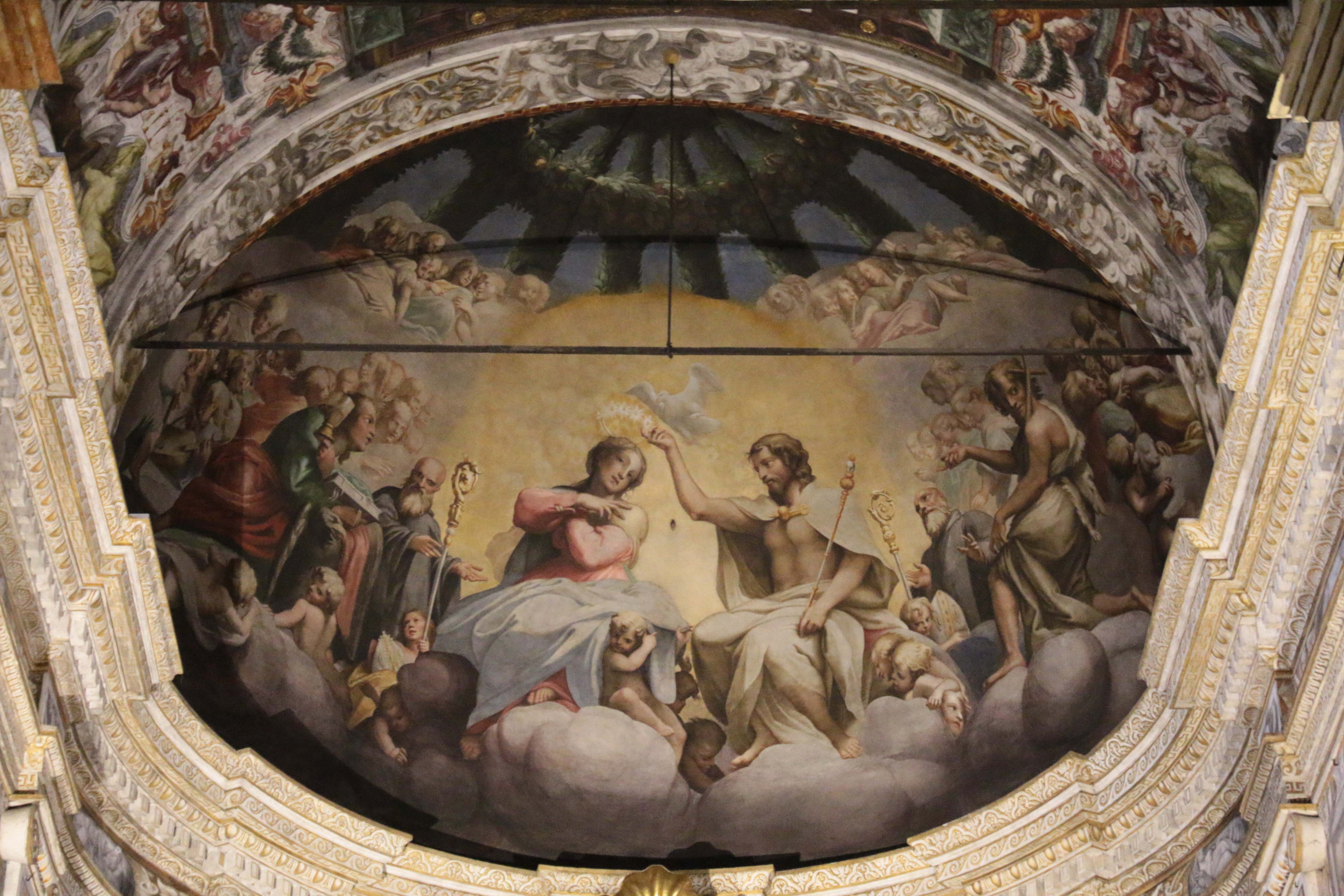 Самое главное в этой церкви - её купол, расписанный Корреджо в 1520-1522 гг. Сюжет находящейся там фрески основан на цитате из 1-й главы Апокалипсиса («Откровение Иоанна Богослова» I,7), предрекающей второе пришествие Христа с небес: «Се, грядет с облаками, и узрит Его всякое око и те, которые пронзили Его; и возрыдают пред Ним все племена земные». Корреджо изобразил густые облака по периметру купола, в которых расположились апостолы. Они наблюдают, как в центре, в божественном свете, на землю спускается Христос. Как и в Сан-Паоло, Корреджо добился удивительной объёмности фрески, на которой парящий в воздухе Христос как бы раздвигает руками облака, чтобы продемонстрировать себя поражённым апостолам.