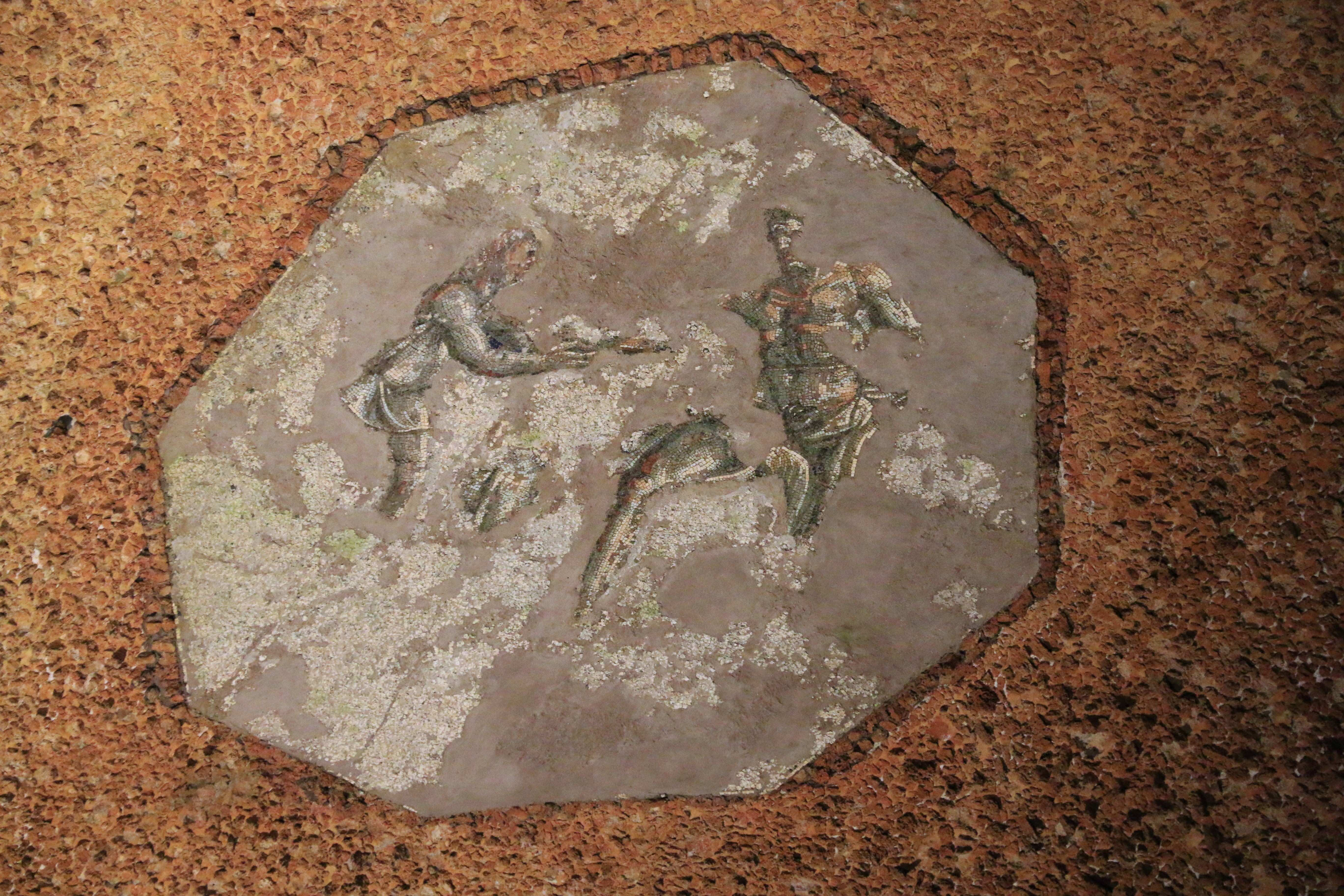 Фото 4.10 Остатки потолочной мозаики: Одиссей предлагает вино Полифему.