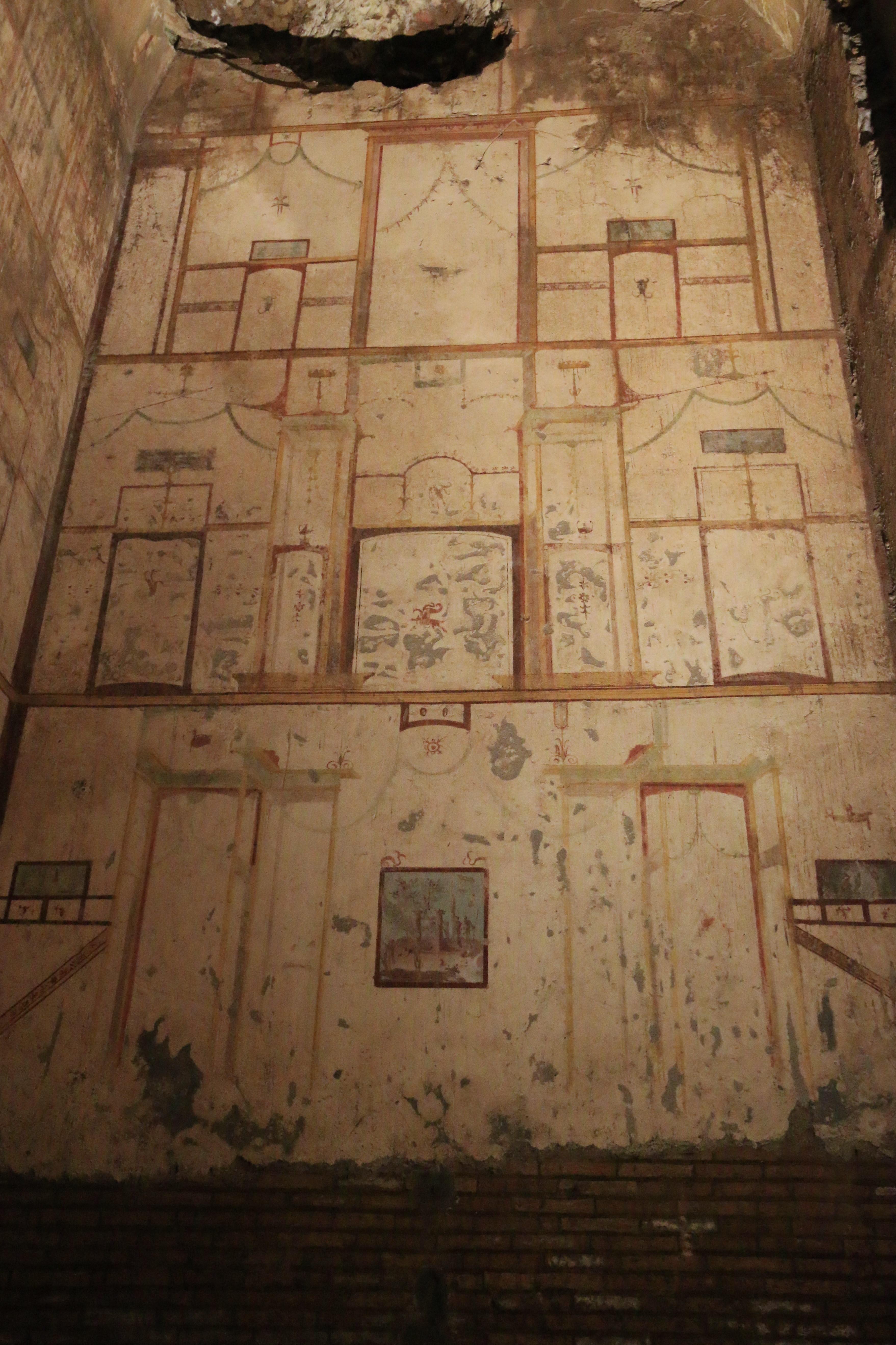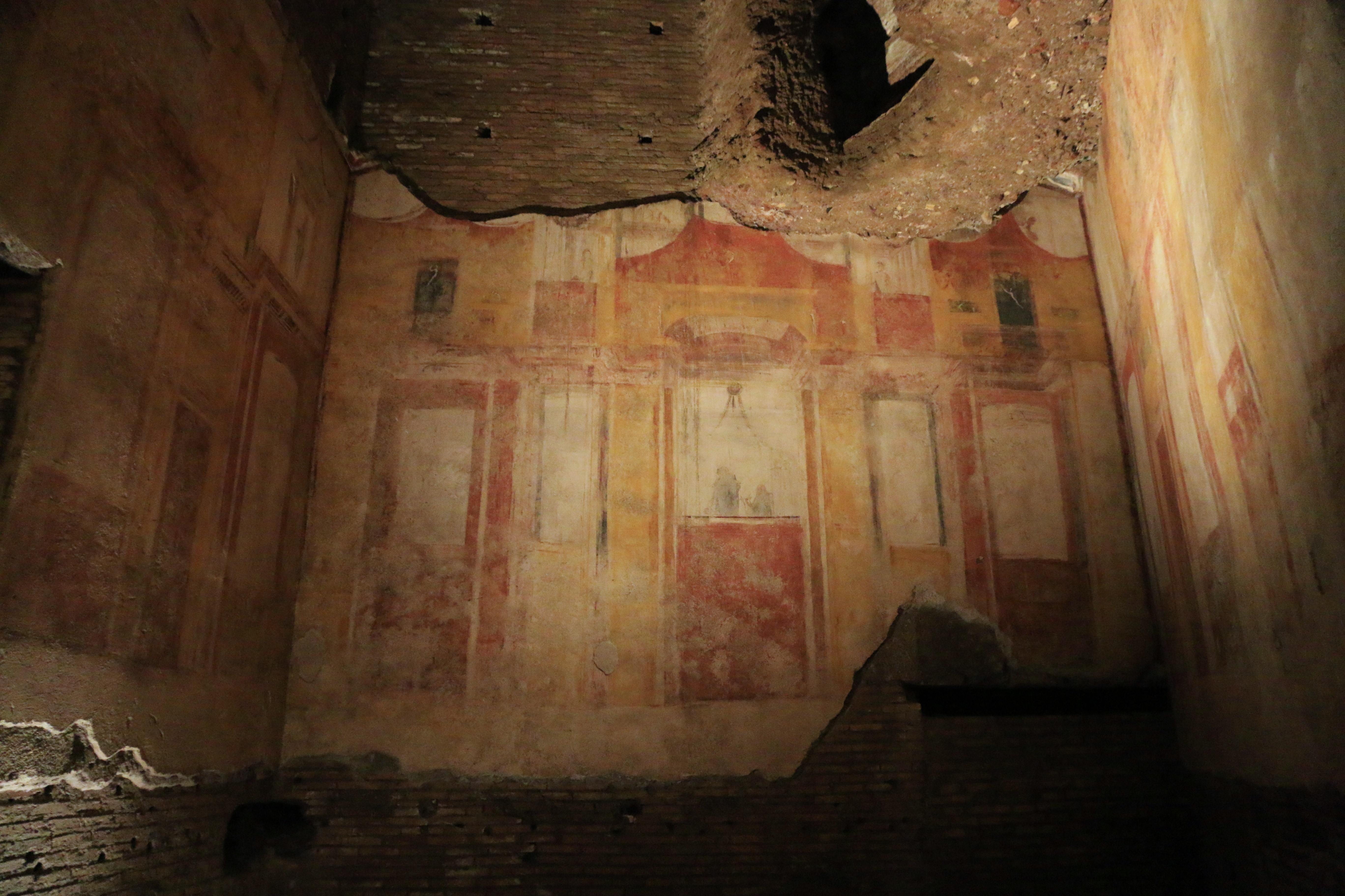 Люди эпохи Возрождения, впервые попавшие внутрь Золотого дома и увидевшие росписи на стенах, понятия не имели, где они оказались, ведь про дворец Нерона уже давно никто не помнил. Проникая в эти развалины сверху, они принимали их за пещеры или гроты, и поэтому настенная роспись, там обнаруженная, была названа pittura grottesca, откуда и пошло слово «гротеск».