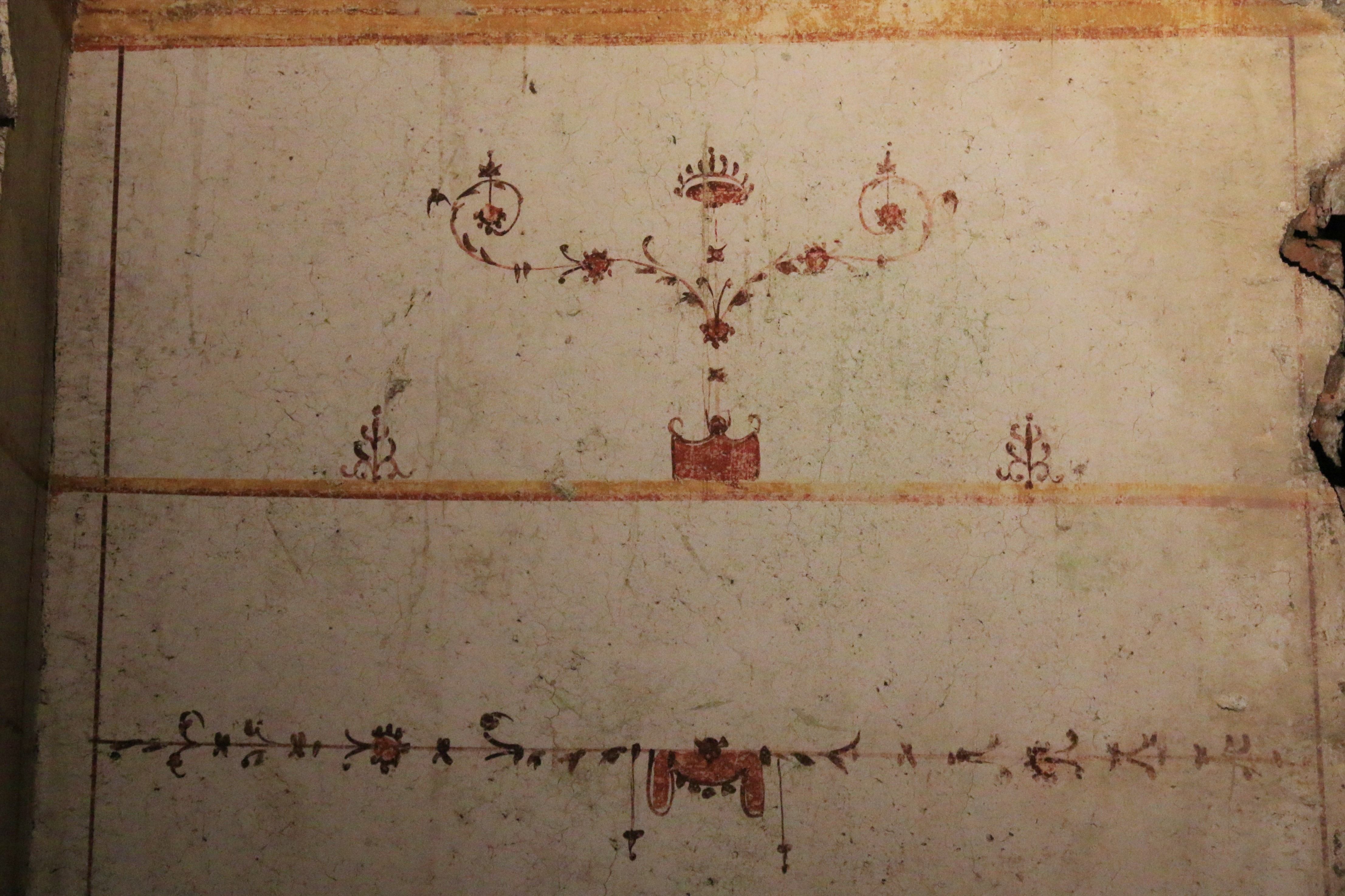 Фото 4.11 Фреска в обрамлении «гротескного» орнамента на сохранившемся фрагменте потолка.