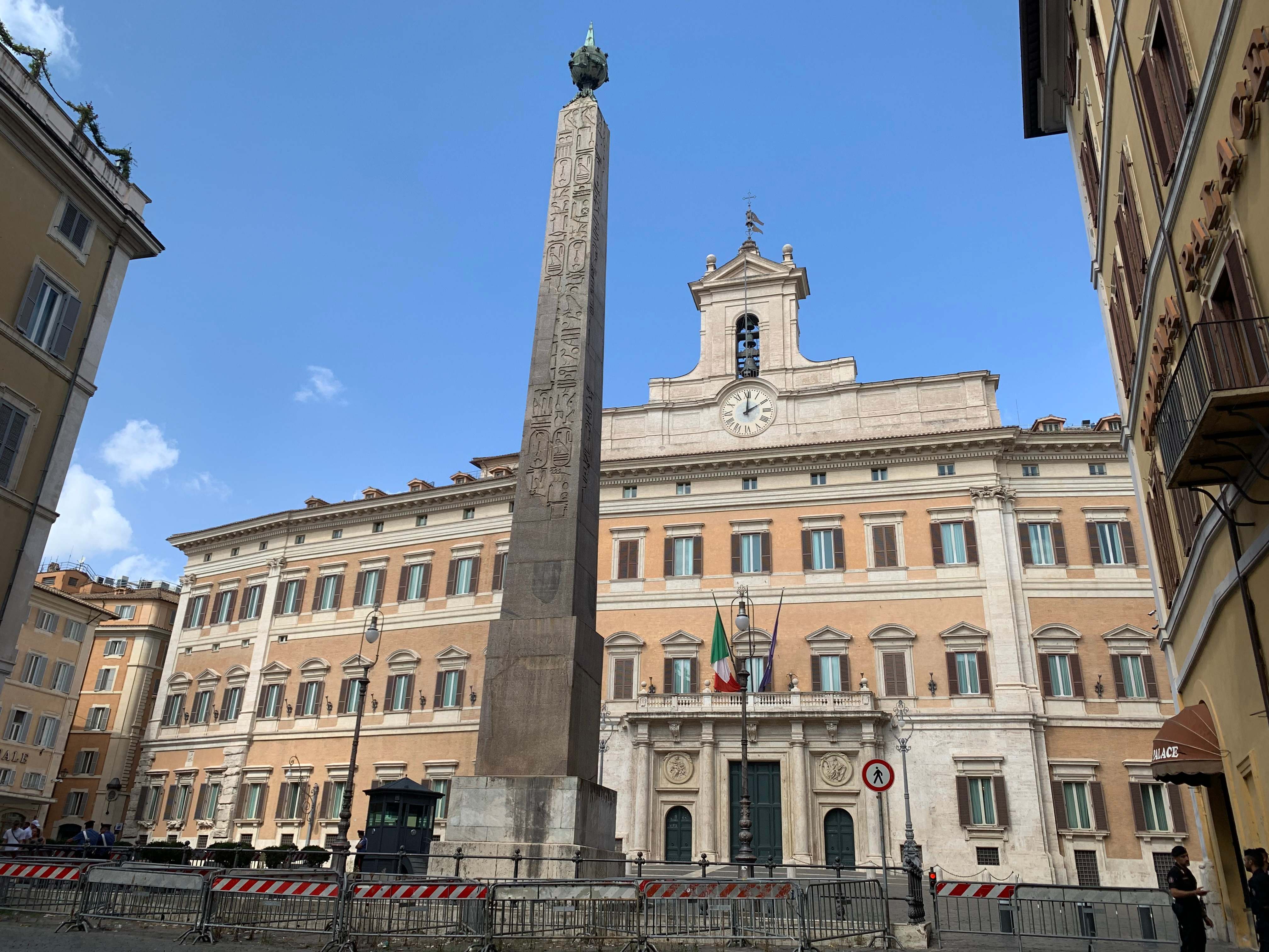 а в 1792 году установлен на площади Монтечиторио (Piazza Montecitorio) папой Пием VI. В находящемся рядом барочном дворце сейчас