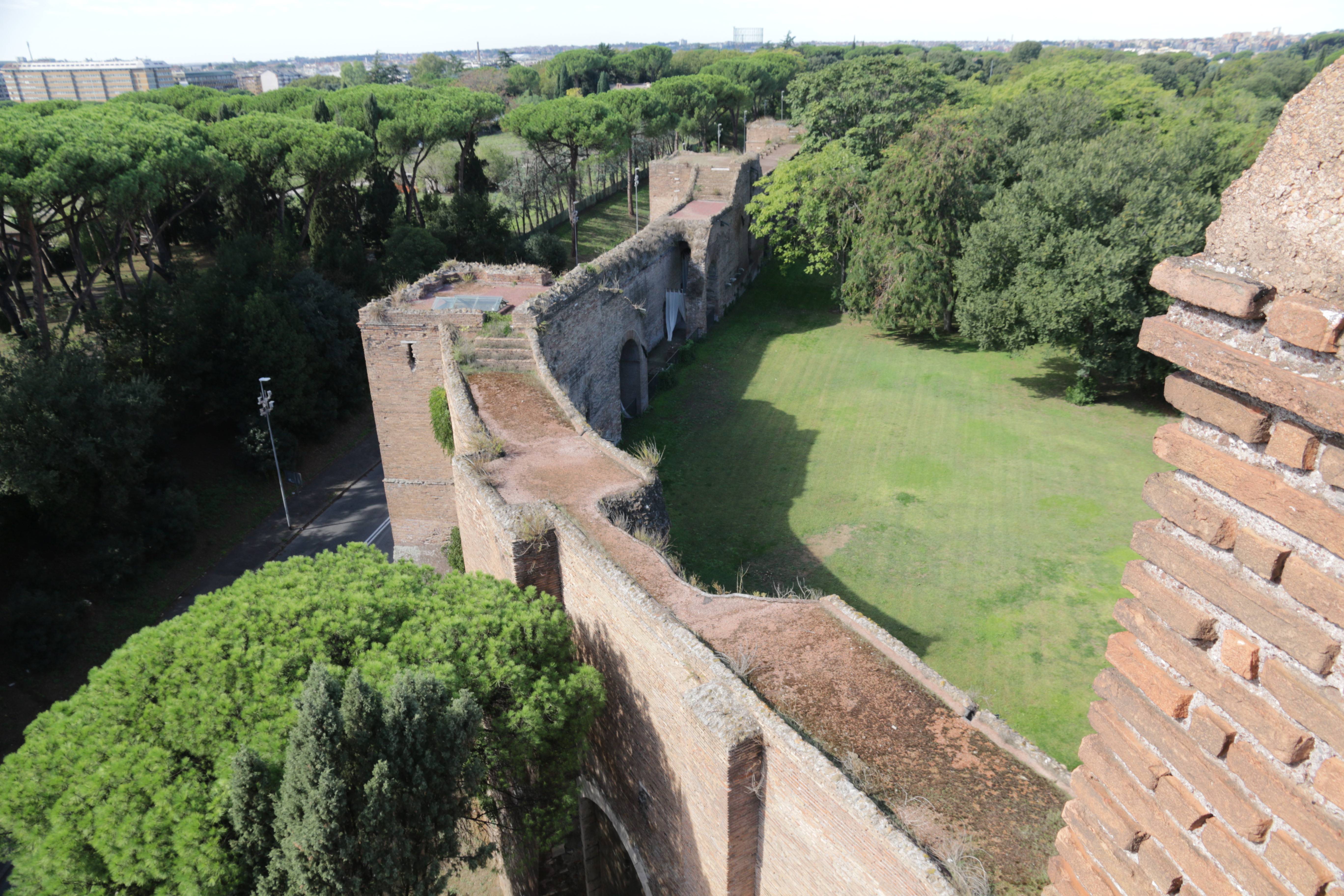 Стена на удивление хорошо сохранилась, поскольку в папском Риме вплоть до 19-го века она использовалась по прямому назначению - как оборонительное сооружение. Мы осмотрели небольшой отрезок южной части стены между Адреатинскими и Латинскими воротами (обозначены как номера 2-4 на карте выше), совместив это с прогулкой по Аппиевой дороге. Кроме того, несколько раз мы оказывались рядом со стеной и её воротами, когда осматривали другие римские достопримечательности, в частности, сады Боргезе, Латеранскую базилику и Пьяцца-дель-Пополо. Прилегающие к ним участки стены (номера 5-7 на карте) также будут упомянуты ниже.