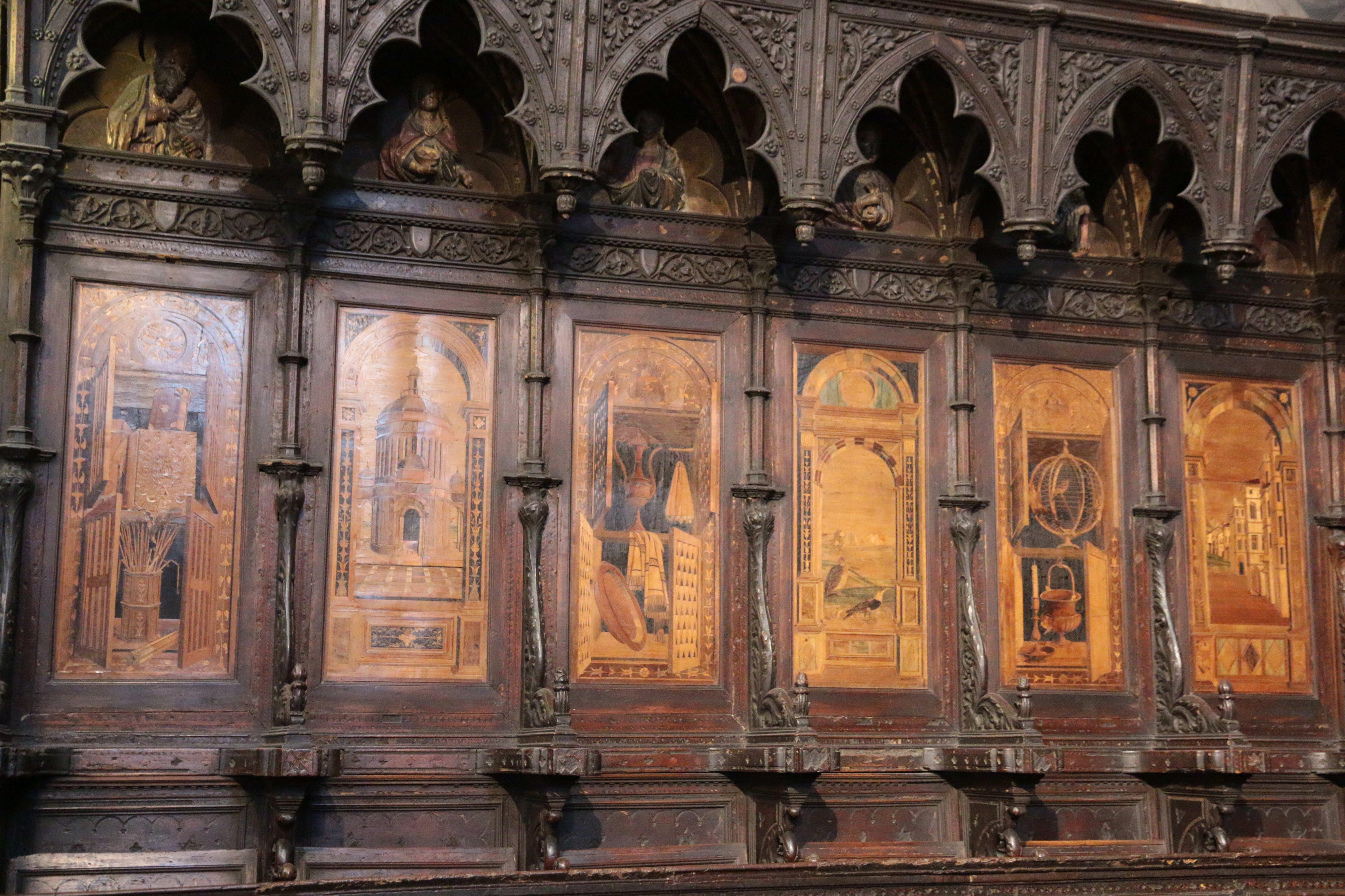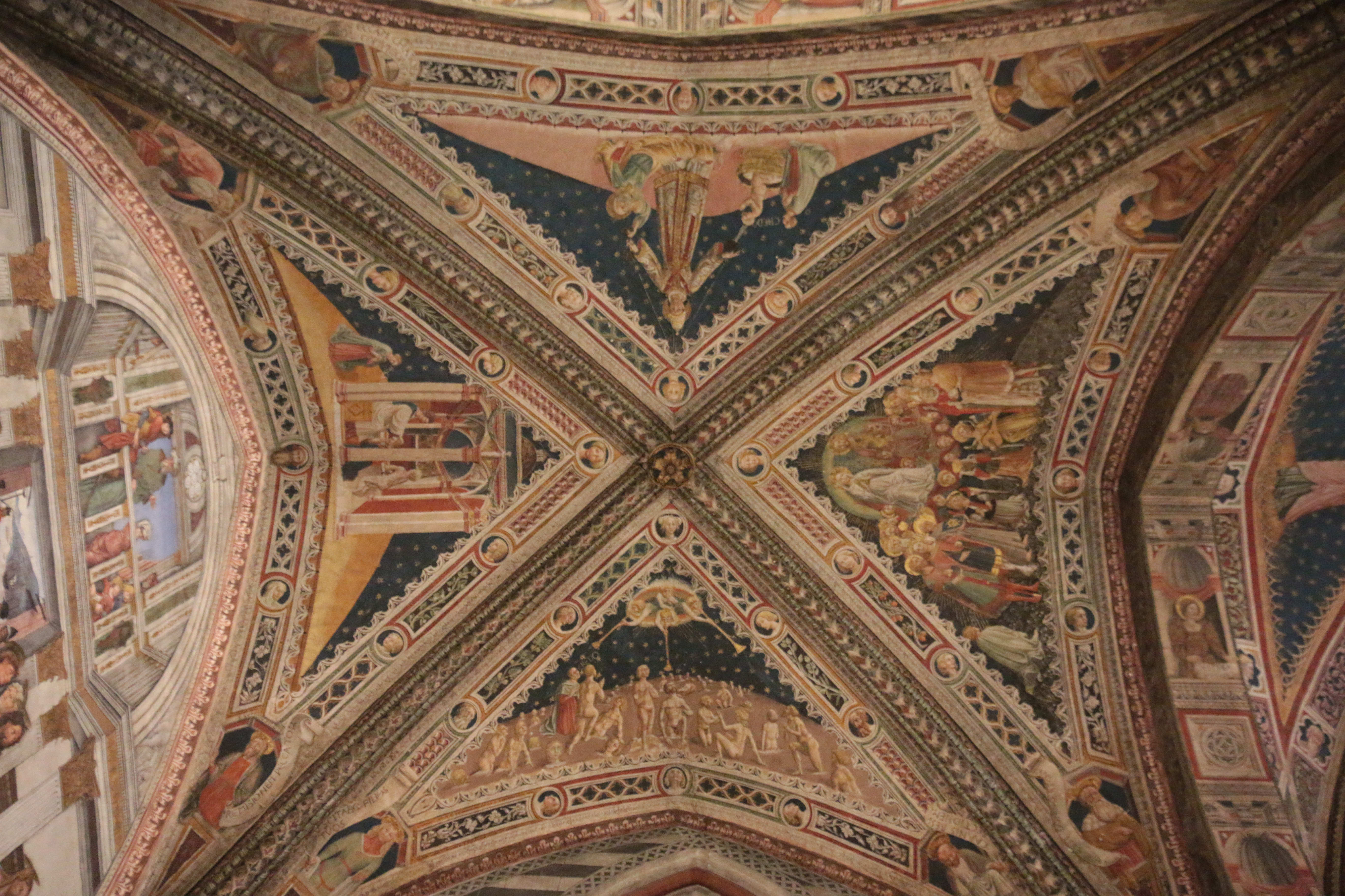 В центре под куполом семь композиций в большом шестиграннике посвящены ветхозаветной истории борьбы пророка Илии и царя Израиля Ахава. Выполненные с 1519 по 1524 гг. Доменико Беккафуми, эти инкрустации считаются самыми качественными и выразительными. Некоторые усматривают в них влияние Рафаэля и Микеланджело.