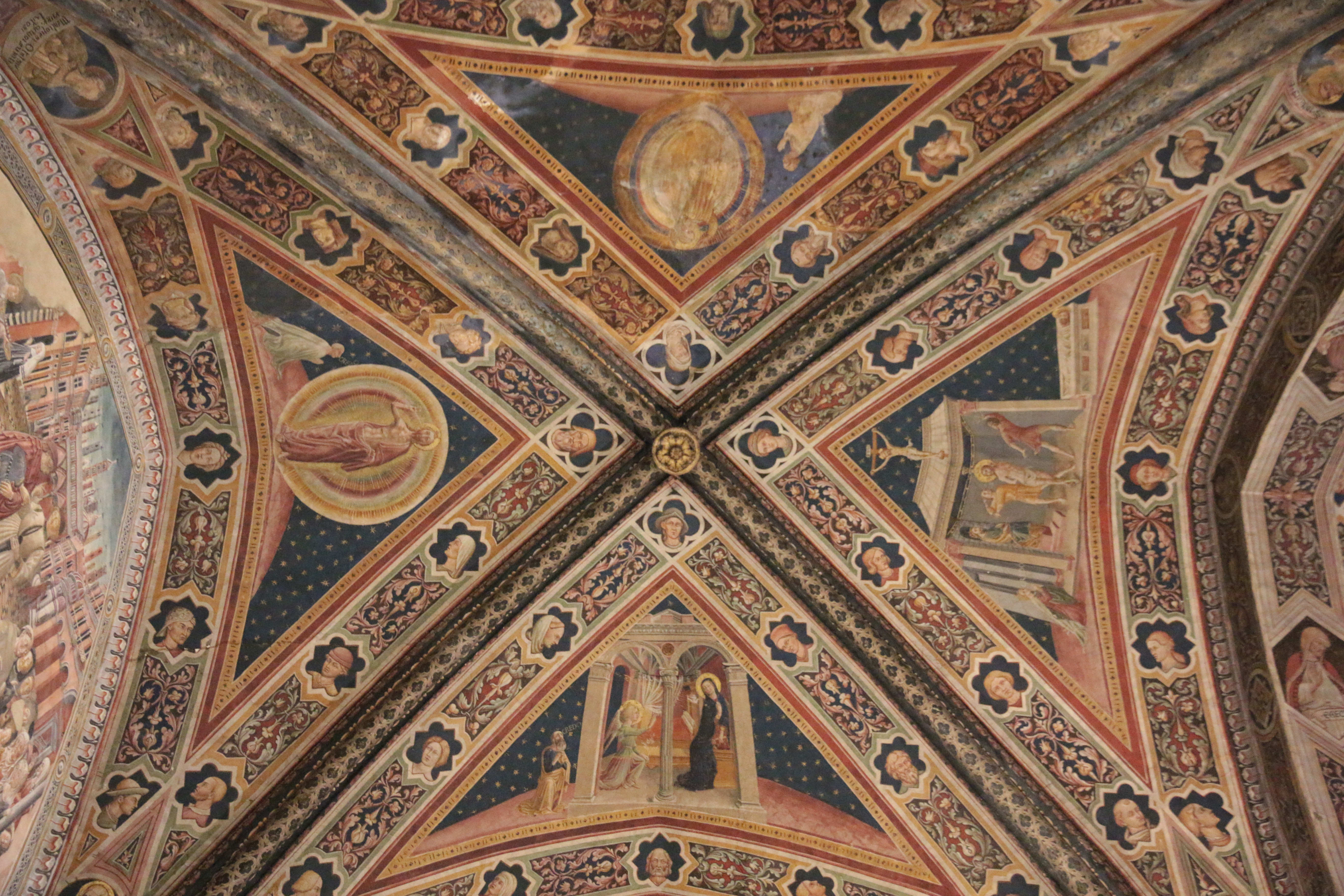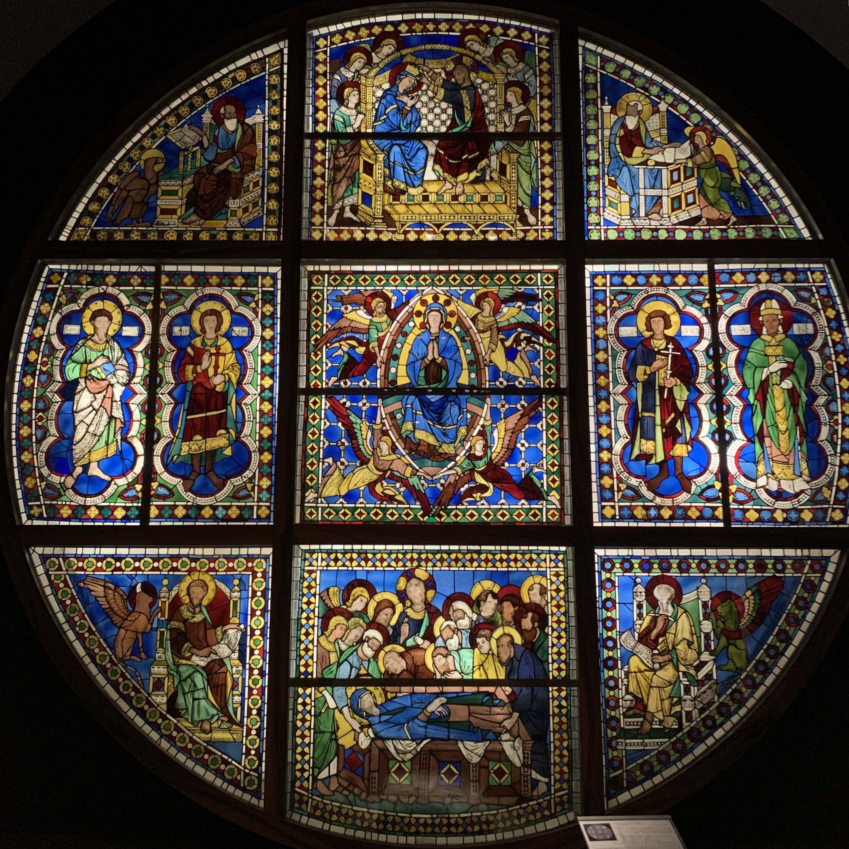Витраж с богородичными сюжетами, четырьмя евангелистами и святыми-покровителями Сиены. Выполнен по картонам Дуччо ди Буонинсенья и считается одним из самых древних итальянских витражей. Это единственная работа такого типа, написанная Дуччо в 1287-1288, а также один из немногих витражей, созданных мастерами сиенской школы.