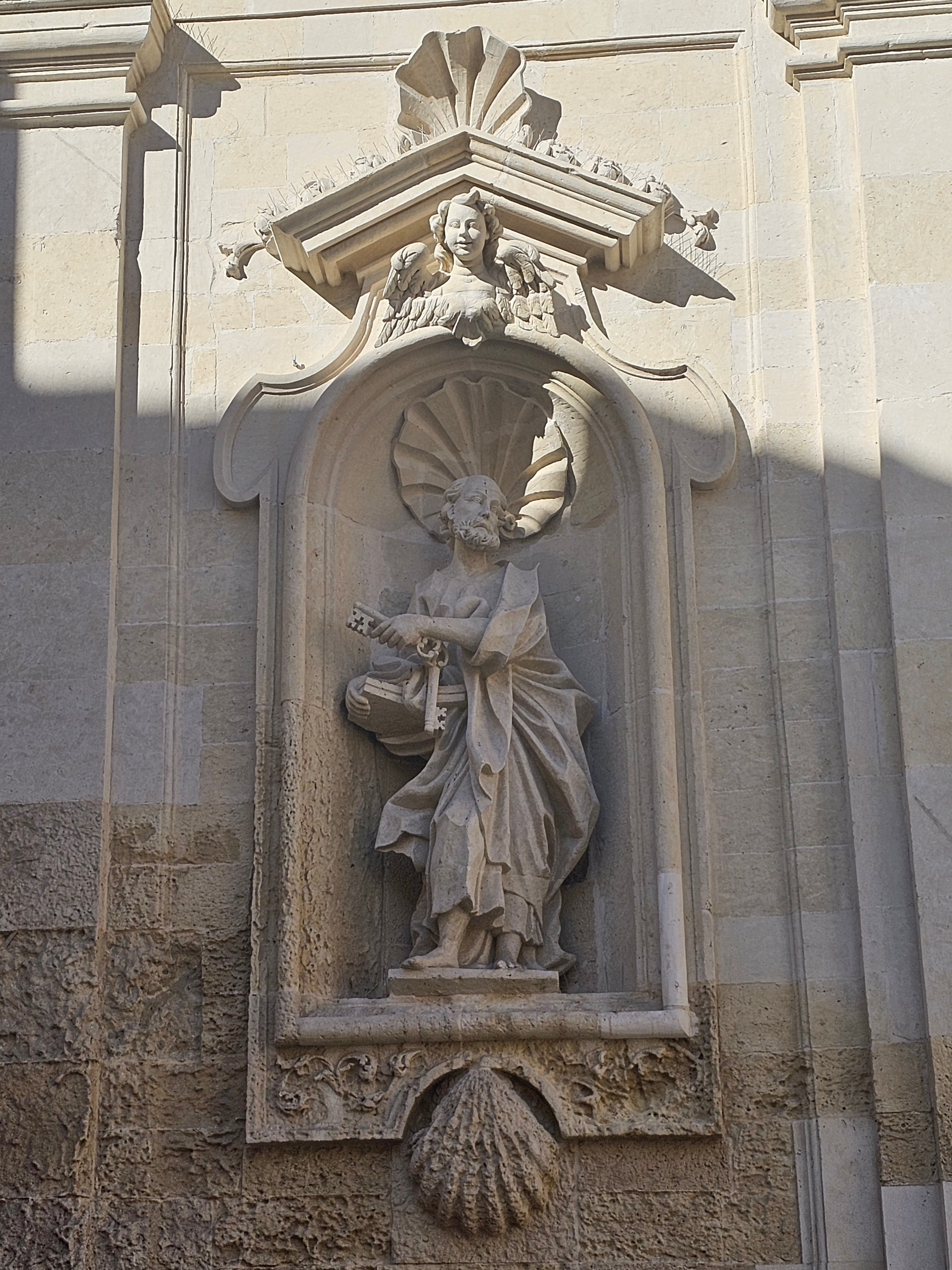 Фото 18ab. Фасад кафедрального собора Таранто, фрагмент. Две статуи в нишах на нижнем уровне изображают св. Марка и св. Петра - апостолов, с которых, как считается, началась евангельская проповедь в этих краях.