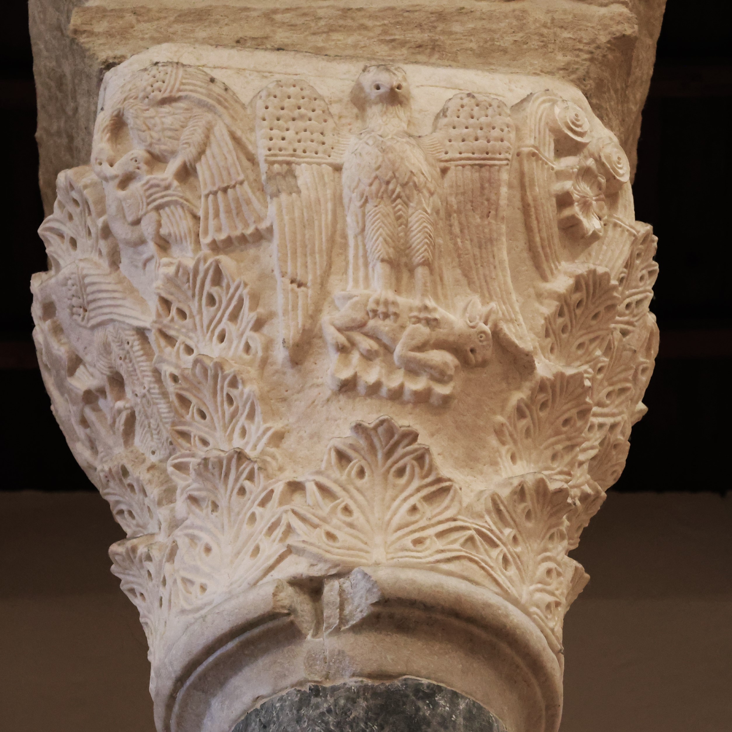 Фото 20ab-21ab. Византийские и романские капители собора Таранто с растительными орнаментами и изображением птиц и животных.