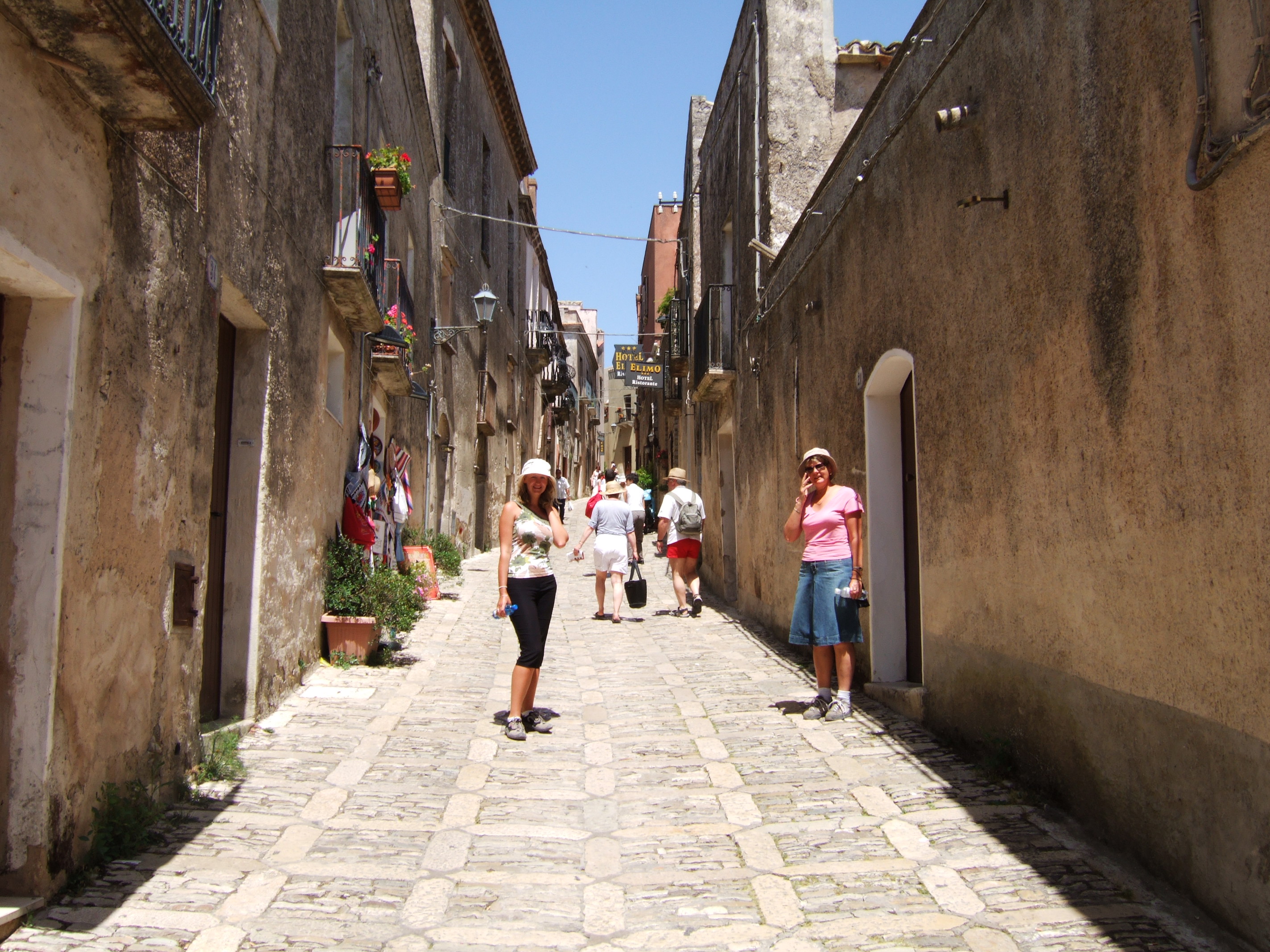 Эриче - маленький средневековый городок (фото 64-66) на западе Сицилии, находящийся на вершине одноимённой горы высотой 750 метров. Сверху открываются потрясающие виды на окружающие долины и морское побережье (фото 67-68). У города богатая античная история. Как и Сегеста, он считается основанным выходцами из Трои. Когда-то на вершине этой горы находился знаменитый храм Венеры, который, увы, до наших дней не сохранился. Из его камней построены многие церкви Эриче, а также норманский замок (фото 69-70), который находится на том месте, где когда-то был храм. От античного города сохранились только массивные каменные стены 8-6 веков до н.э (фото 71-72), которые названы "циклопическими", поскольку сложены из огромных камней без связующего раствора.