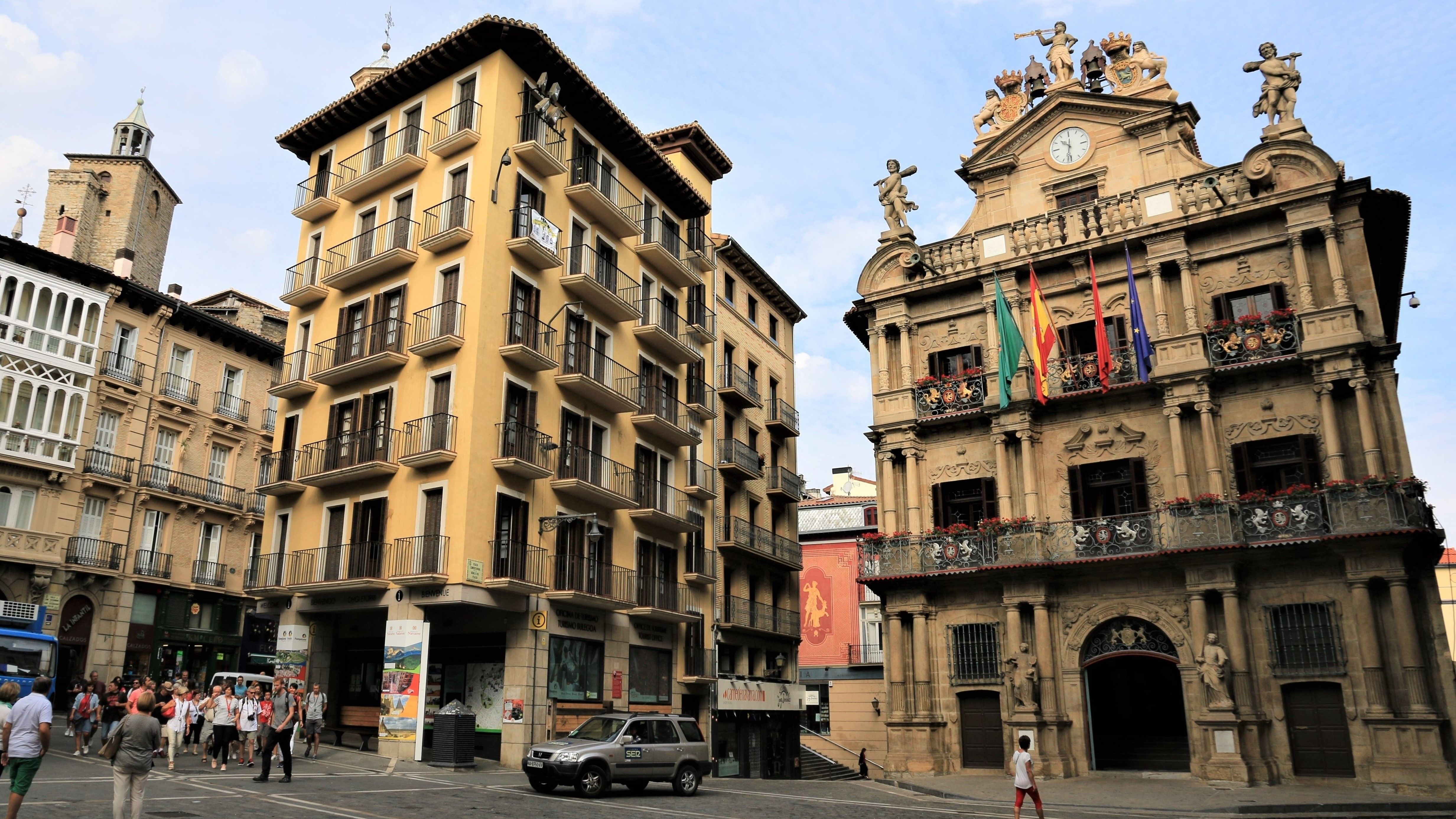 Всё это продолжалось до начала 15-го века, пока упоминавшийся выше король Карлос III не положил конец вражде. В 1423 году он объединил все три квартала в единый город, срыв стены между ними, а на месте «ничейной зоны», из-за которой часто вспыхивали схватки, устроил большую площадь и построил ратушу. Война прекратилась, и горожане Памплоны до сих пор благодарны за это королю.