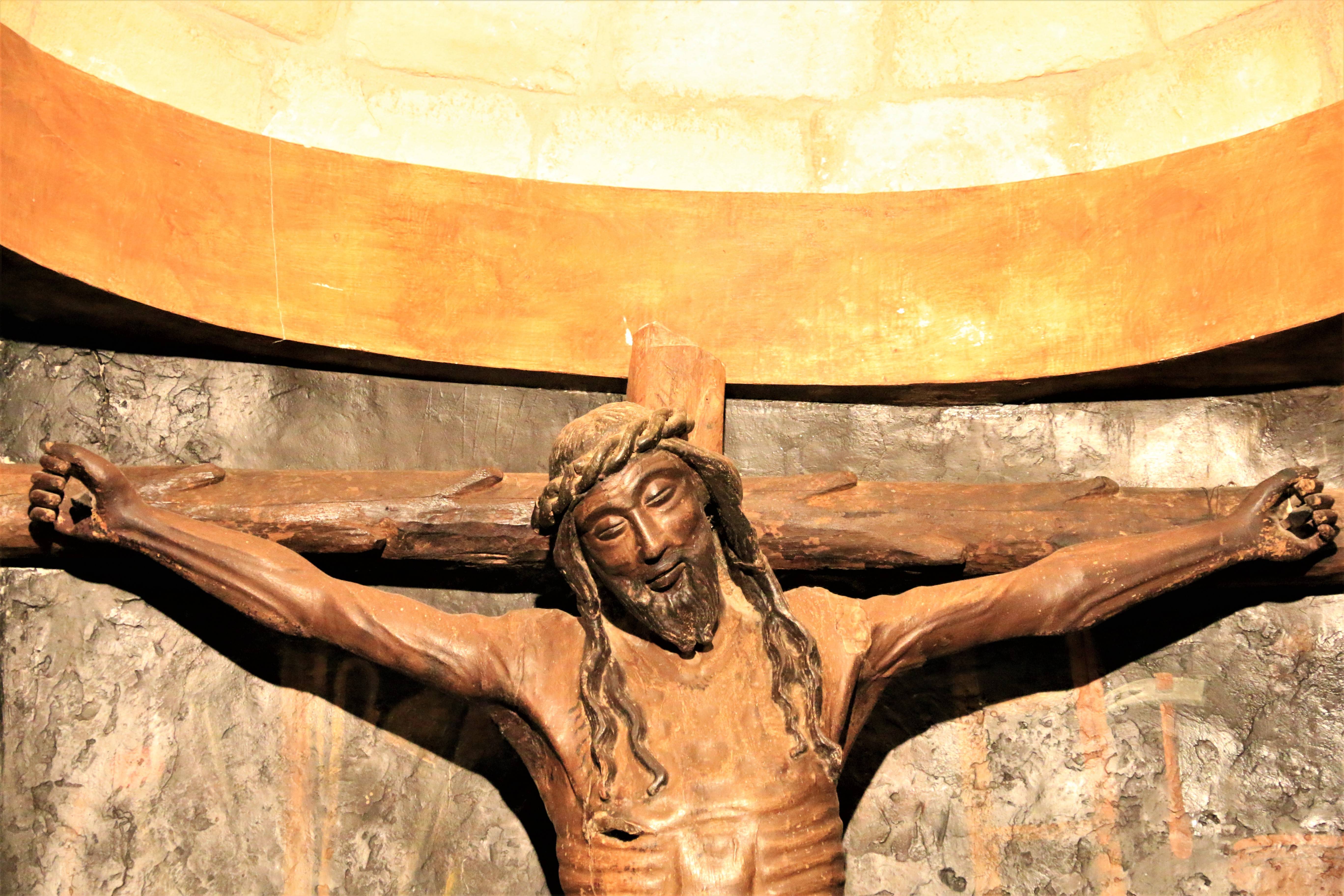Кроме того, в одной из часовен (Capilla del Santo Cristo) находится искусно выполненное в 16-м веке распятие из орехового дерева (фото 68-70), на котором по лицу Христа как бы бродит улыбка. И это ощущение не покидает, с какого бы ракурса не смотреть. На стенах вокруг этого распятия - фрески 15-го века с изображением скелетов, исполняющих танец смерти (фото 70) – крайне необычное и странное зрелище для христианской церкви.