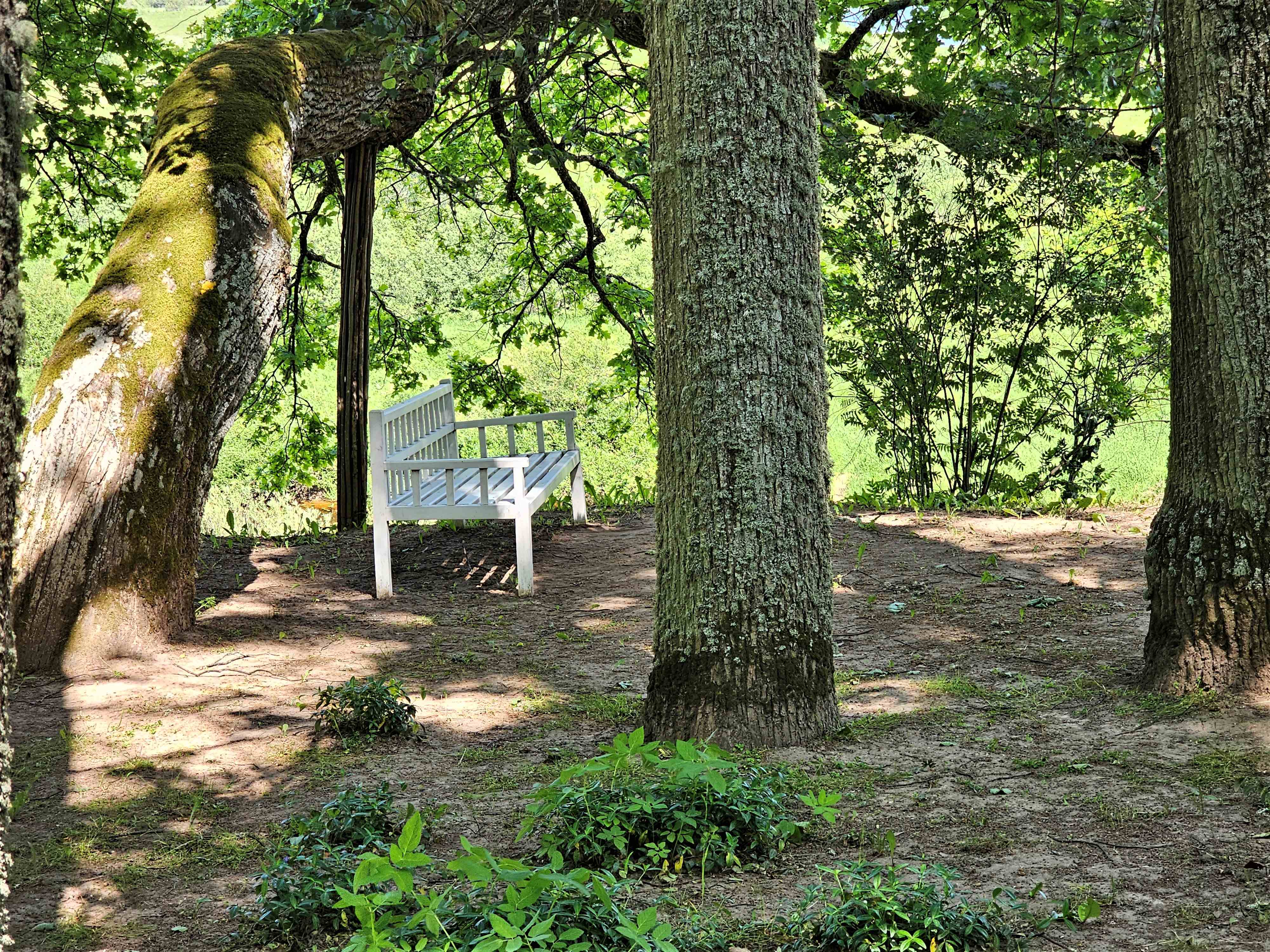 Фото 46. Пушкинские горы: Тригорское, скамейка Онегина. Якобы в этом месте могло произойти