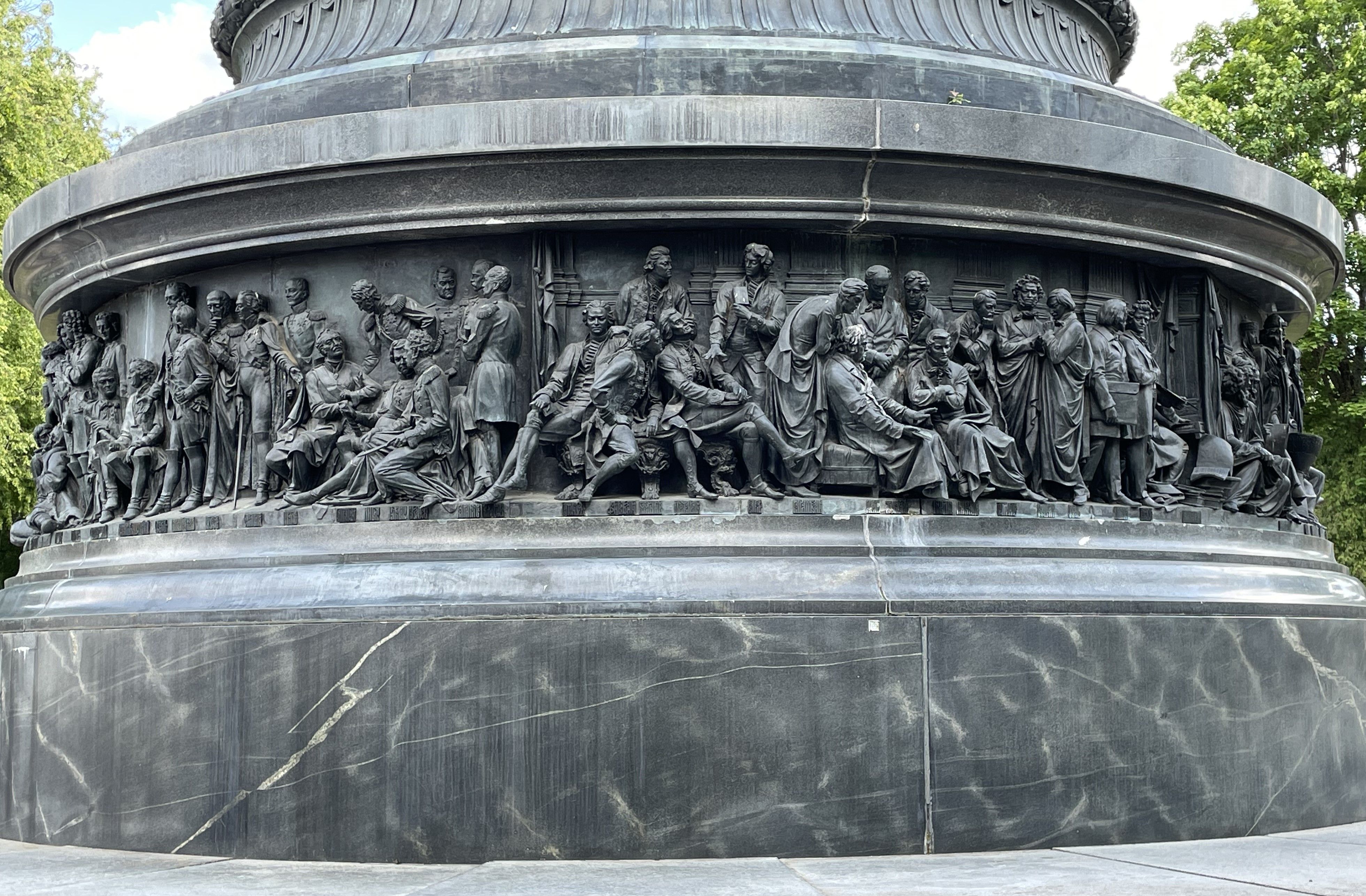 Фото 11. 27-метровый круговой горельеф с выдающимися деятелями России внизу памятника.